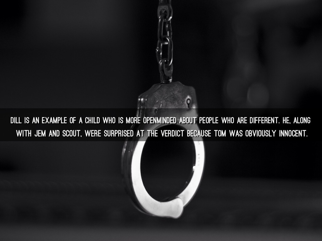 DILL IS AN EXAMPLE OF A CHILD WHO IS MORE OPENMINDED ABOUT PEOPLE WHO ARE DIFFERENT. HE, ALONG