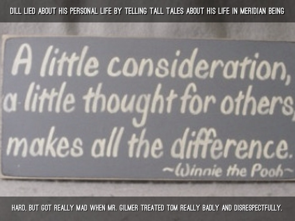 DILL LIED ABOUT HIS PERSONAL LIFE BY TELLING TALL TALES ABOUT HIS LIFE IN MERIDIAN BEING