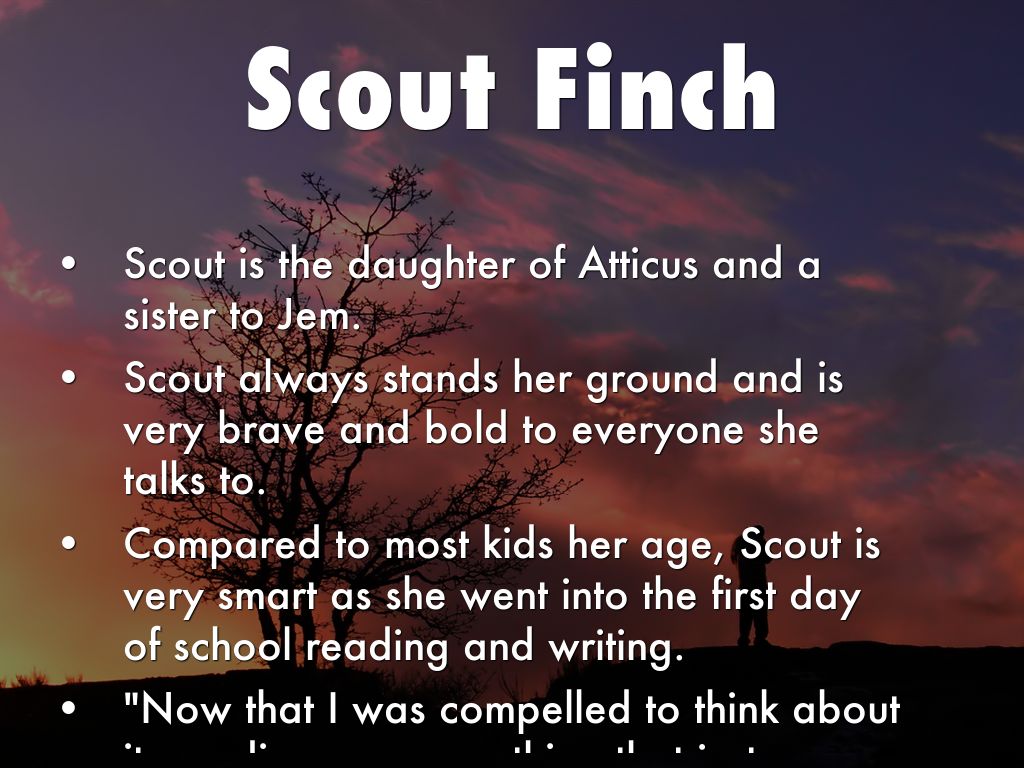 Scout is the daughter of Atticus and a sister to Jem.