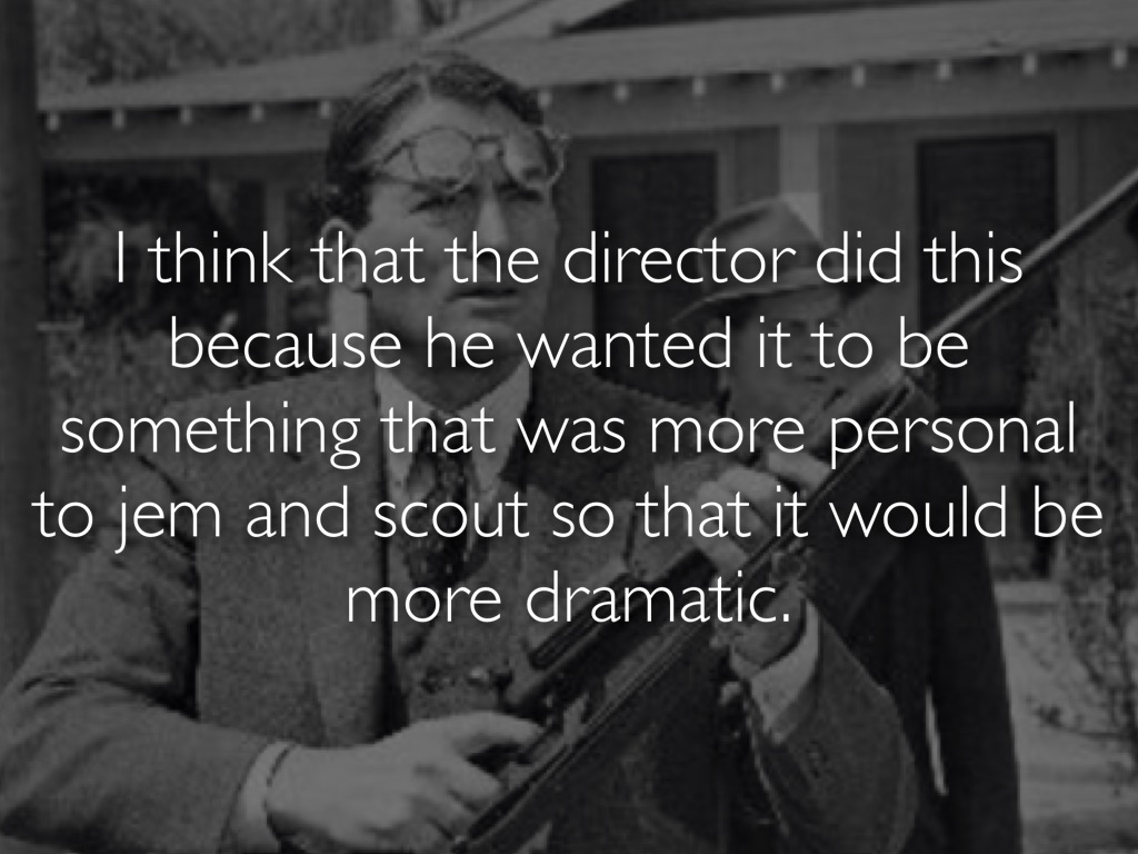 I think that the director did this because he wanted it to be something that was more personal to jem and scout so that it would be more dramatic.