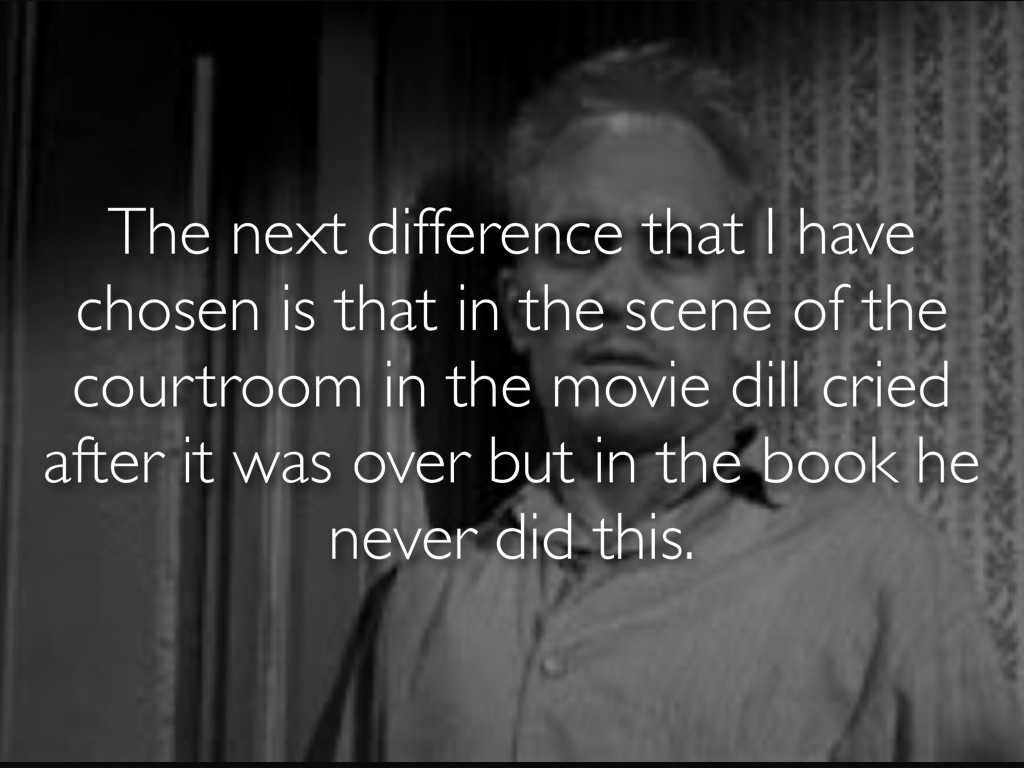 The next difference that I have chosen is that in the scene of the courtroom in the movie dill cried after it was over but in the book he never did this.