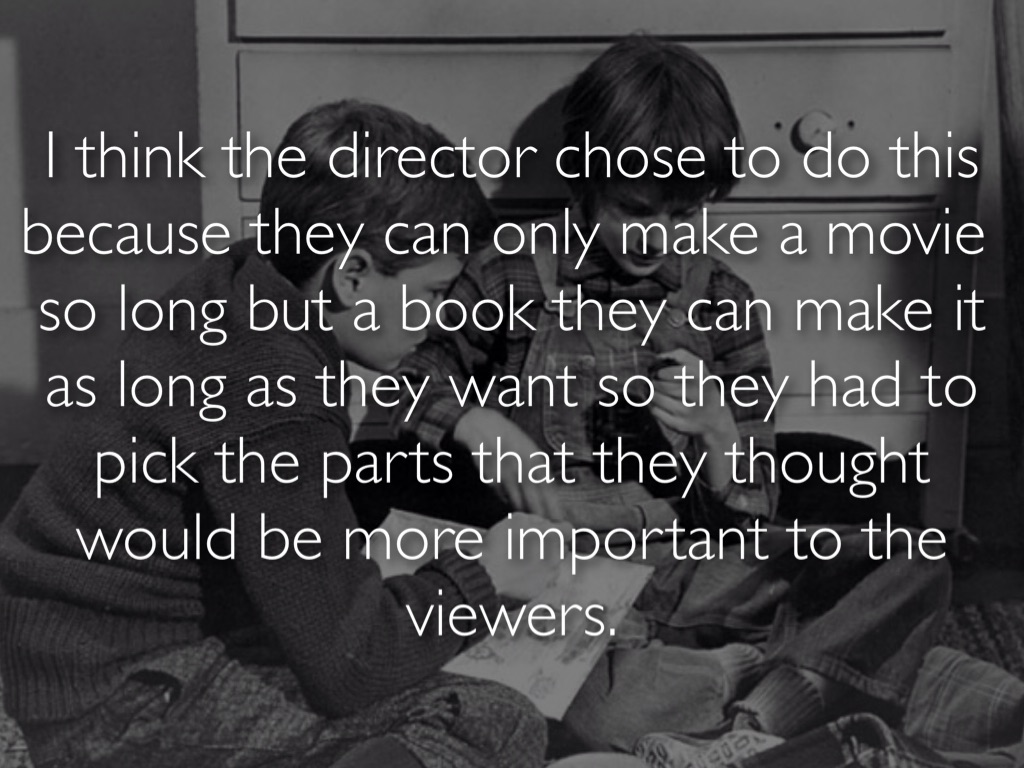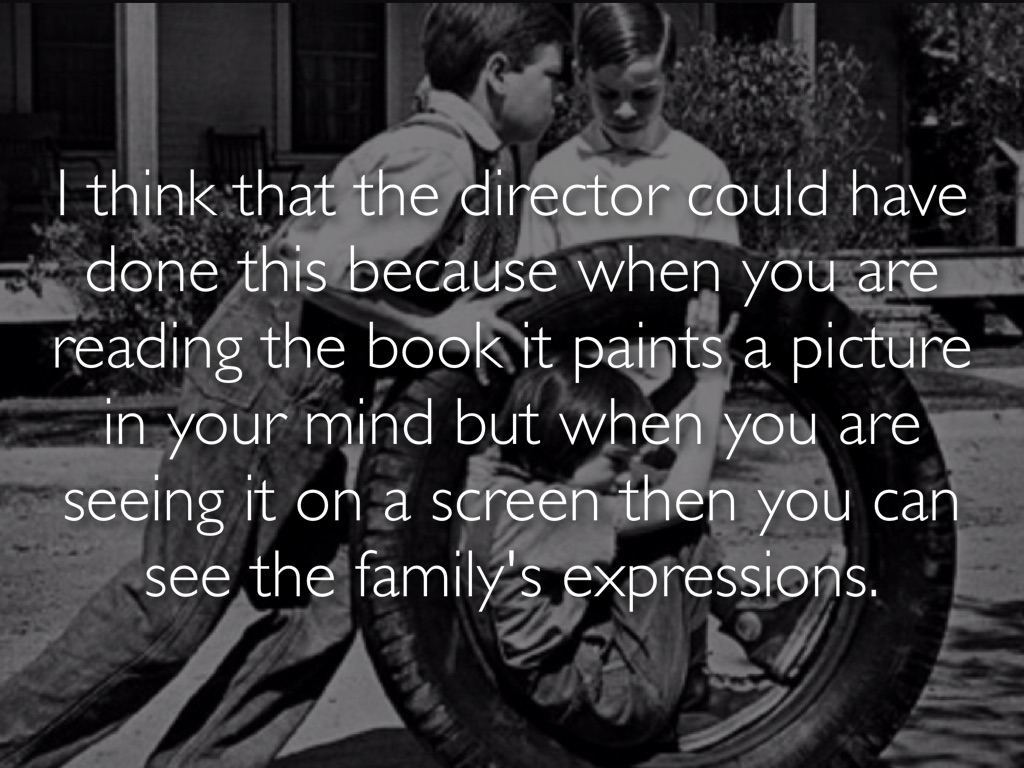 I think that the director could have done this because when you are reading the book it paints a picture in your mind but when you are seeing it on a screen then you can see the family's expressions.