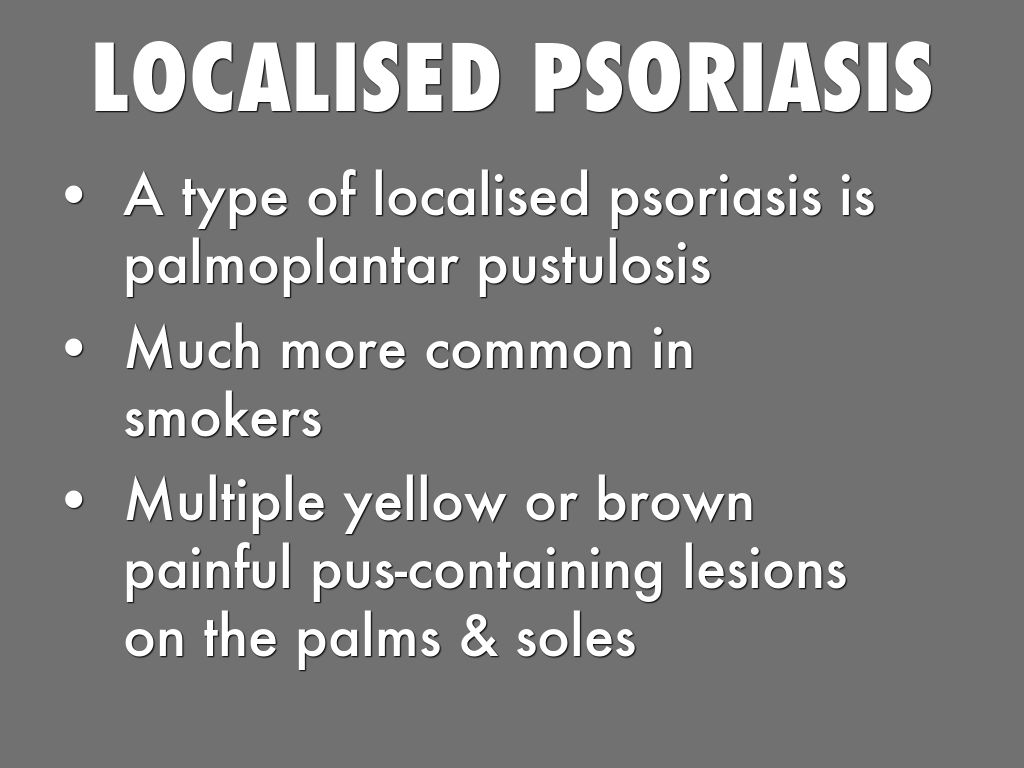 Types: psoriasis, chronic plaque psoriasis, localised psoriasis