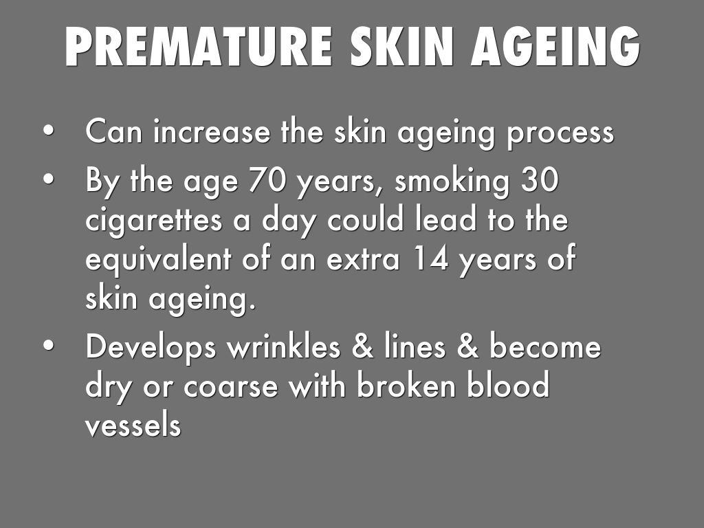By the age 70 years, smoking 30 cigarettes a day could lead to the equivalent of an extra 14 years of skin ageing.