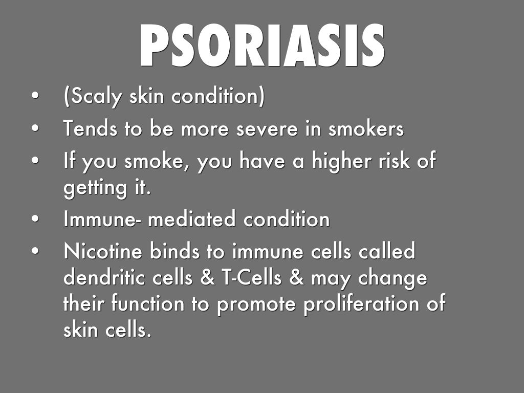 Nicotine binds to immune cells called dendritic cells & T-Cells & may change their function to promote proliferation of skin cells.