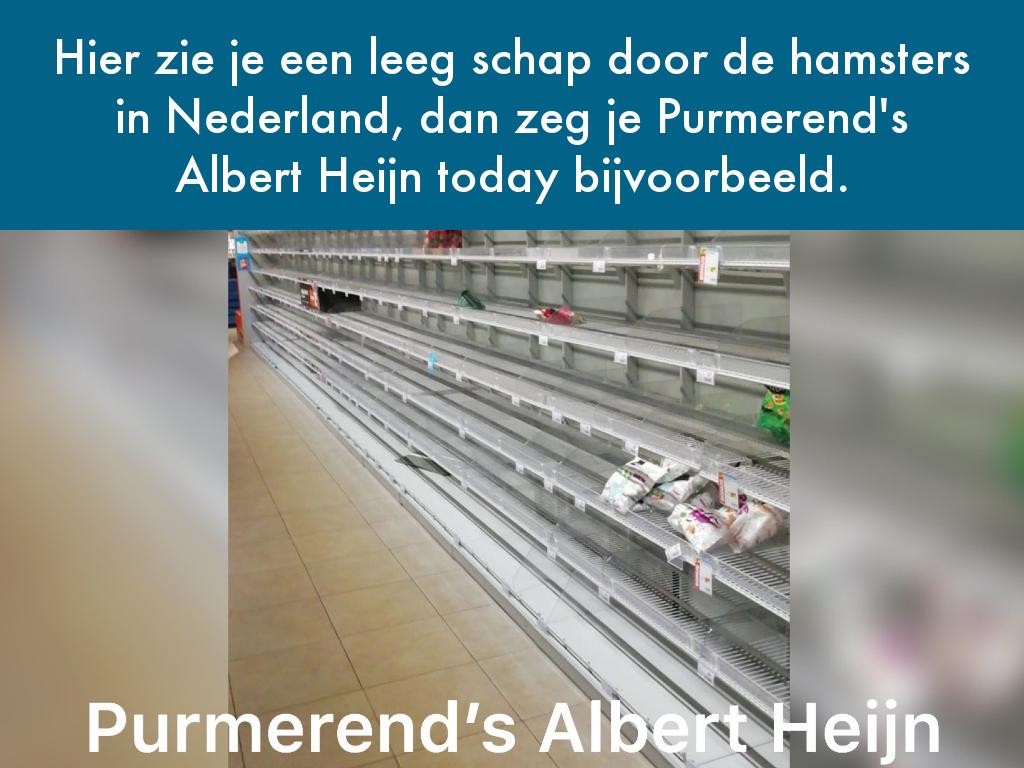 Hier zie je een leeg schap door de hamsters in Nederland, dan zeg je Purmerend's Albert Heijn today bijvoorbeeld.