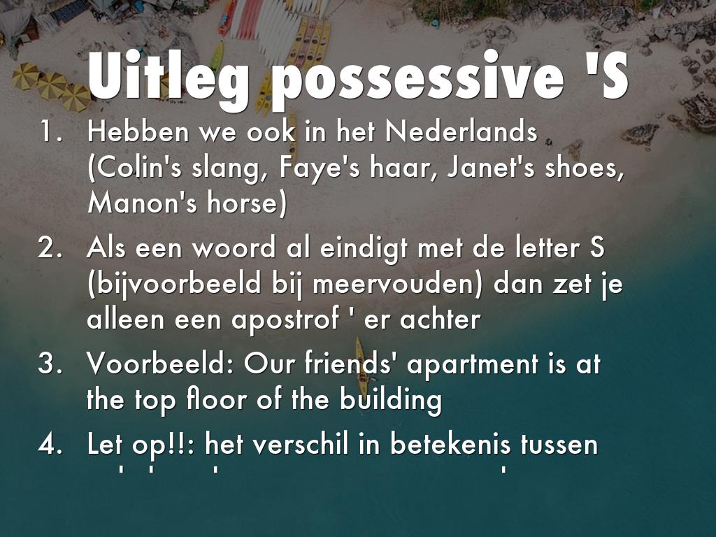 - Als een woord al eindigt met de letter S (bijvoorbeeld bij meervouden) dan zet je alleen een apostrof ' er achter