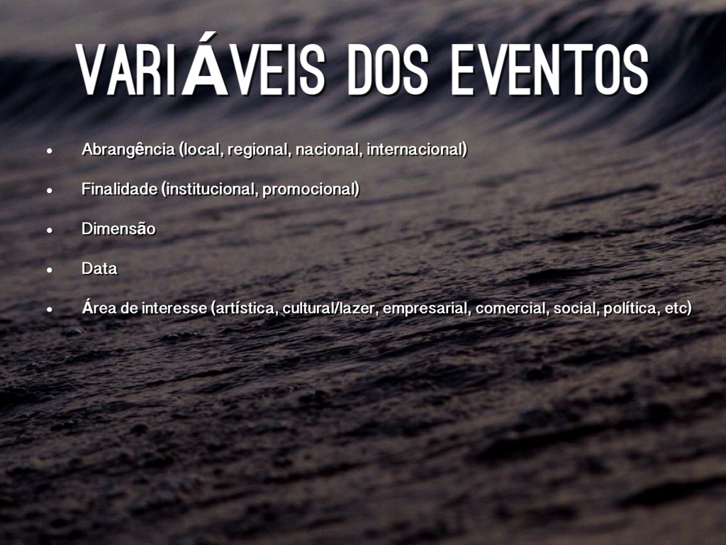 UM EVENTO É UM ACONTECIMENTO PLANEADO, QUE OCORRE NUM DADO TEMPO E
