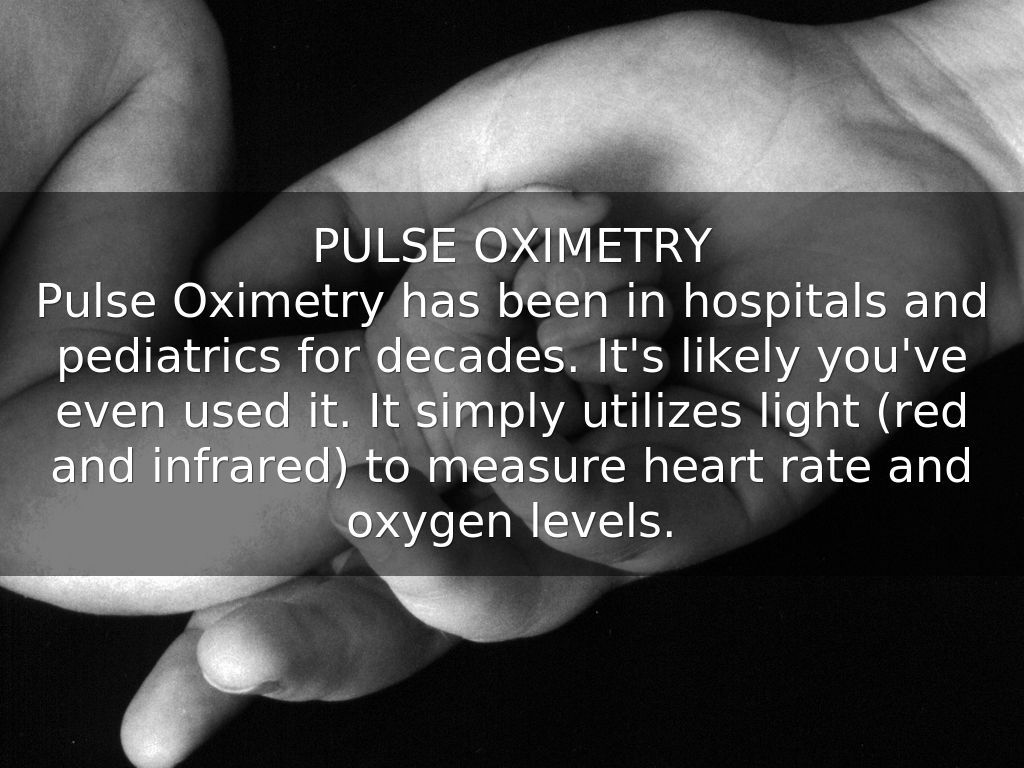 pediatrics for decades. It's likely you've even used it. It simply utilizes light (red and infrared) to measure heart rate and oxygen levels.