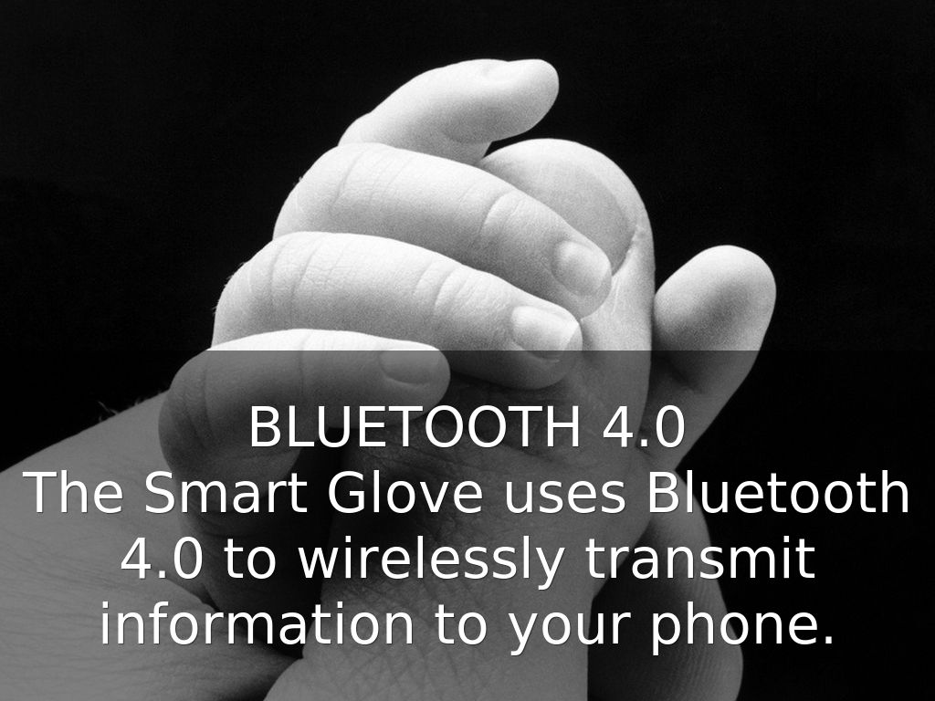 The Smart Glove uses Bluetooth 4.0 to wirelessly transmit information to your phone.