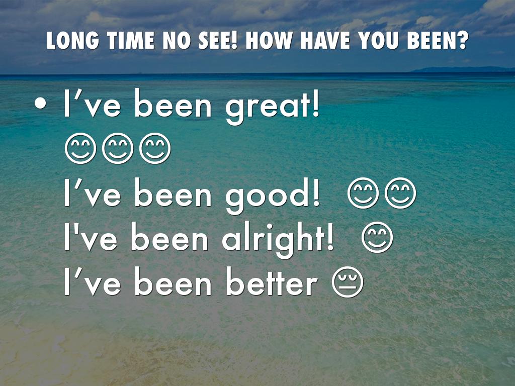 LONG TIME NO SEE! HOW HAVE YOU BEEN?