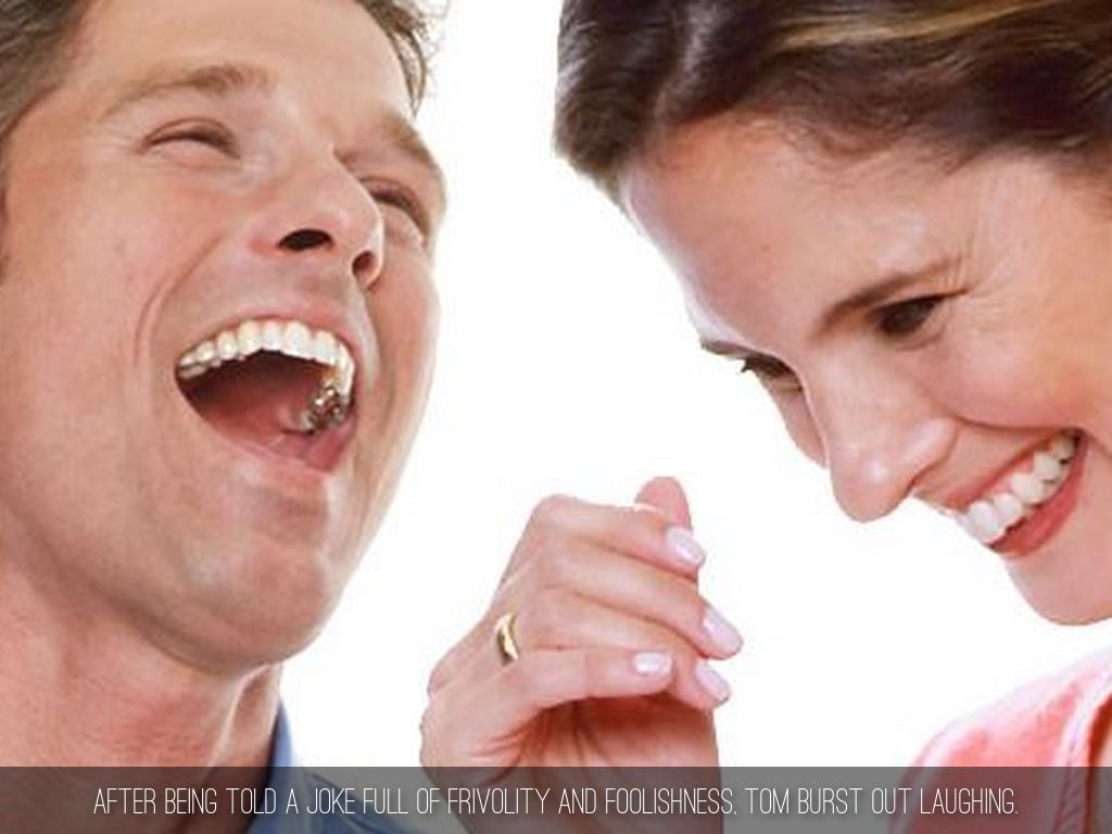 After being told a joke full of Frivolity and Foolishness, Tom Burst out laughing.