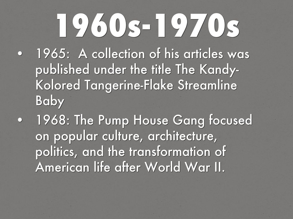 1970: Published two essays in book form in Radical Chic & Mau-Mauing the Flak Catchers,” a critical account of a party given by Leonard Bernstein to raise money for the Black Panther Party