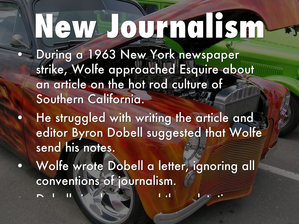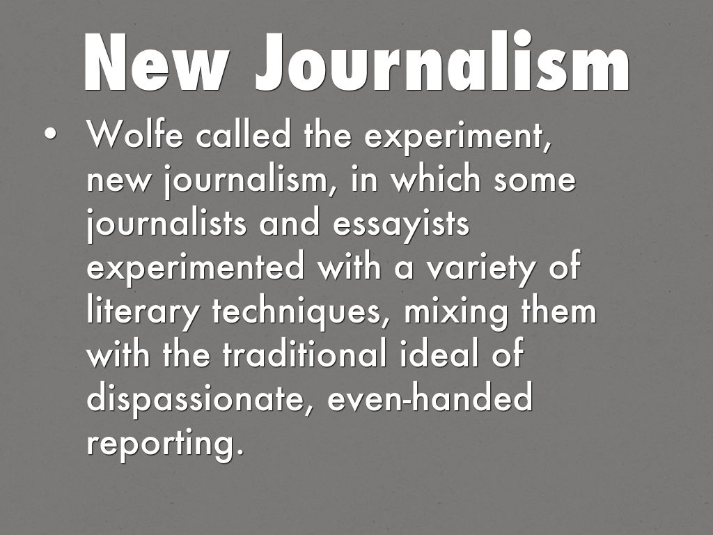 Wolfe called the experiment, new journalism, in which some journalists and essayists experimented with a variety of literary techniques, mixing them with the traditional ideal of dispassionate, even-handed reporting.