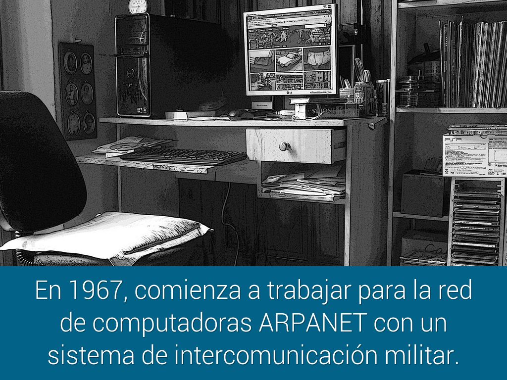 En 1967, comienza a trabajar para la red de computadoras ARPANET con un sistema de intercomunicación militar.