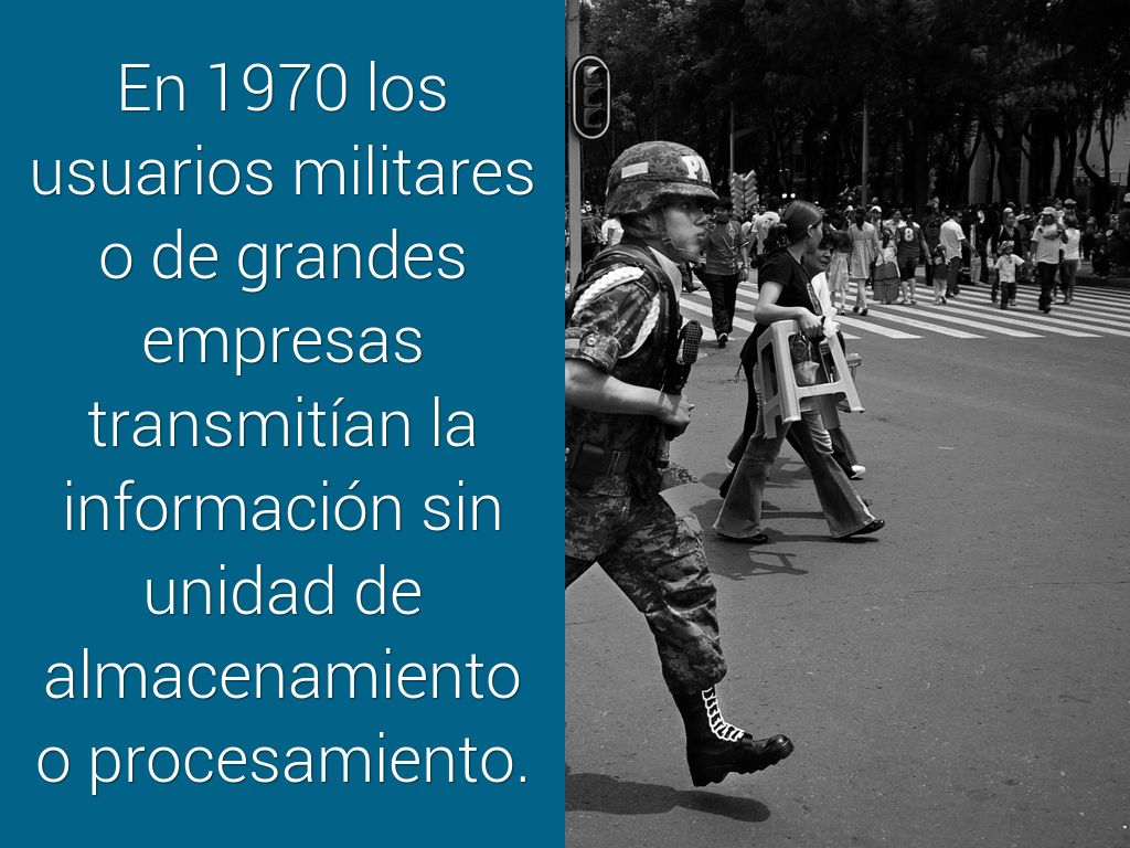 En 1970 los usuarios militares o de grandes empresas transmitían la información sin unidad de almacenamiento o procesamiento.