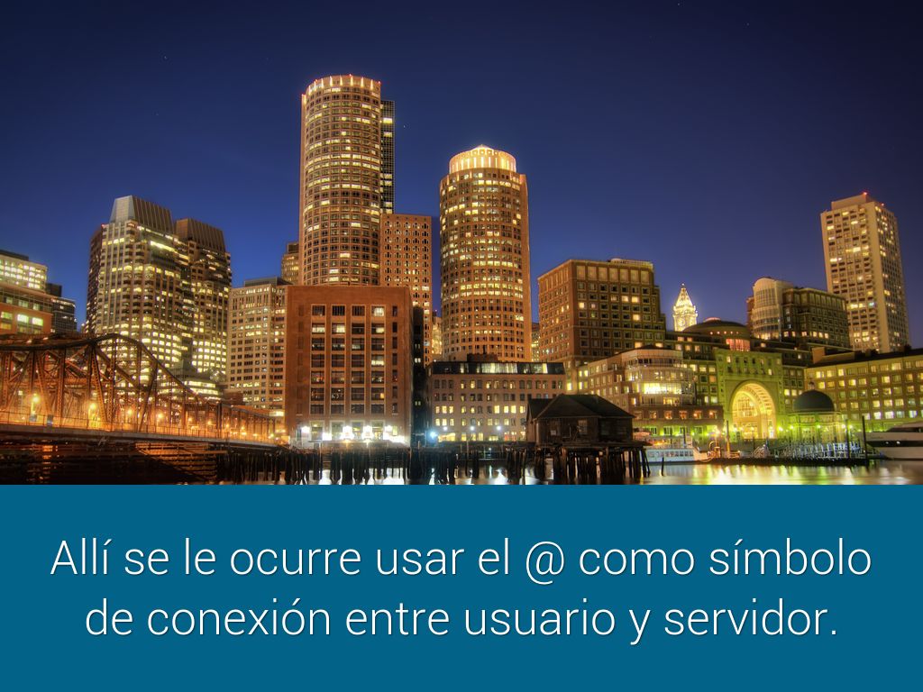 Allí se le ocurre usar el @ como símbolo de conexión entre usuario y servidor.