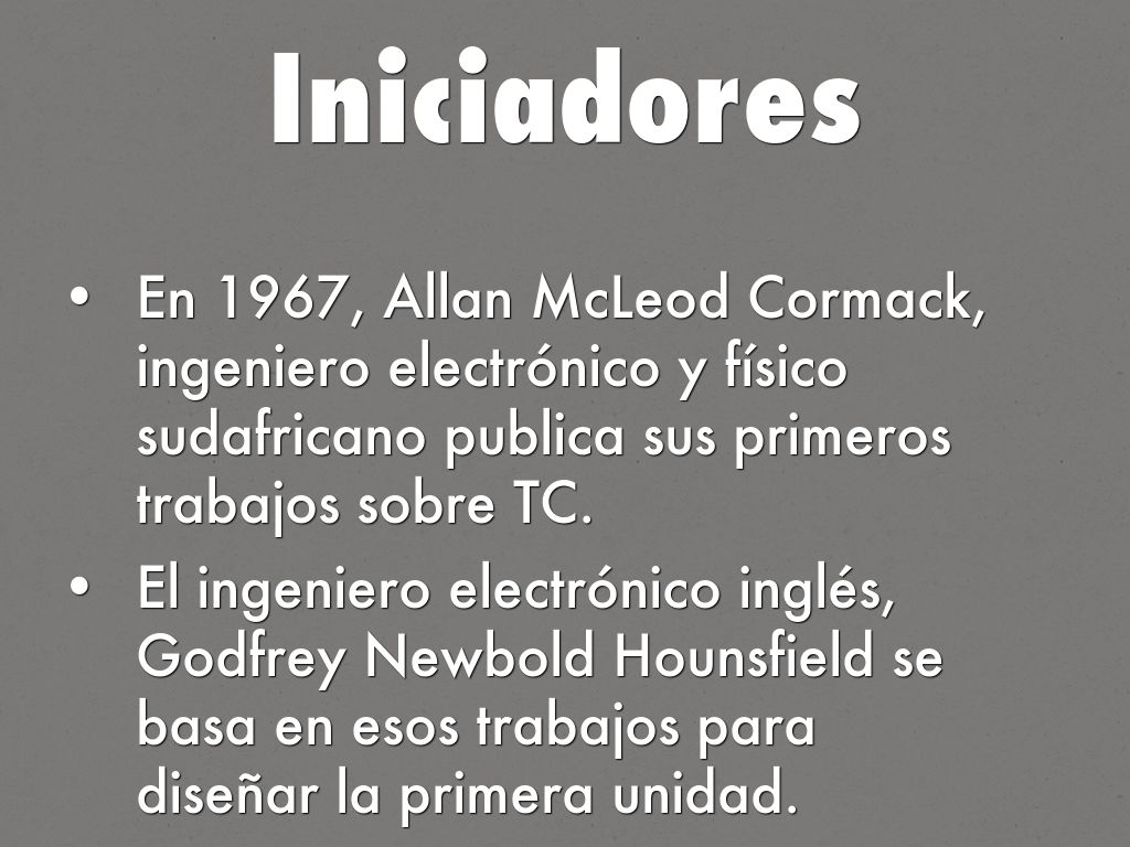En 1967, Allan McLeod Cormack, ingeniero electrónico y físico sudafricano publica sus primeros trabajos sobre TC.