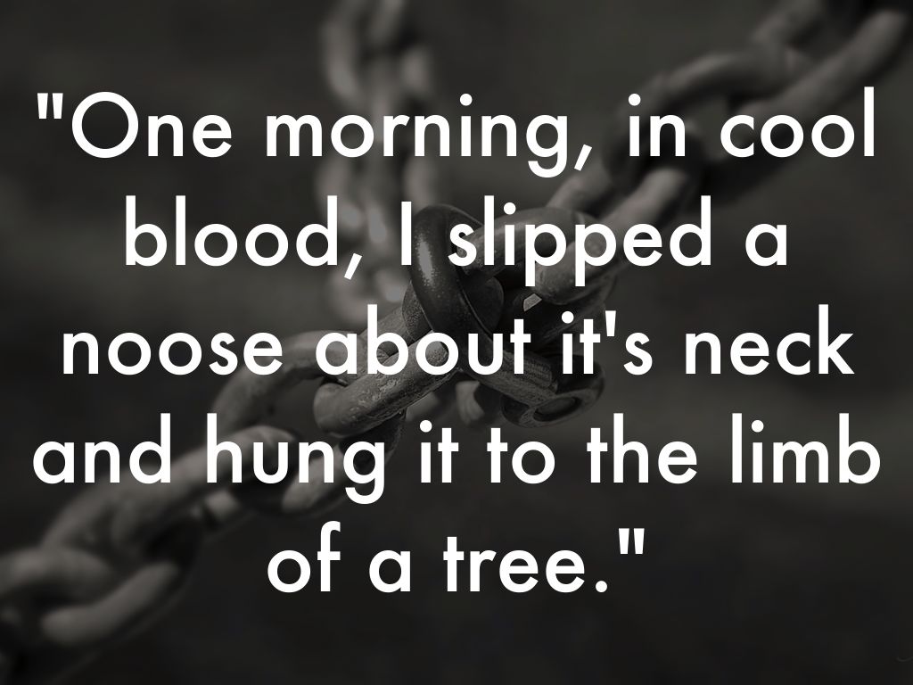 "One morning, in cool blood, I slipped a noose about it's neck and hung it to the limb of a tree."