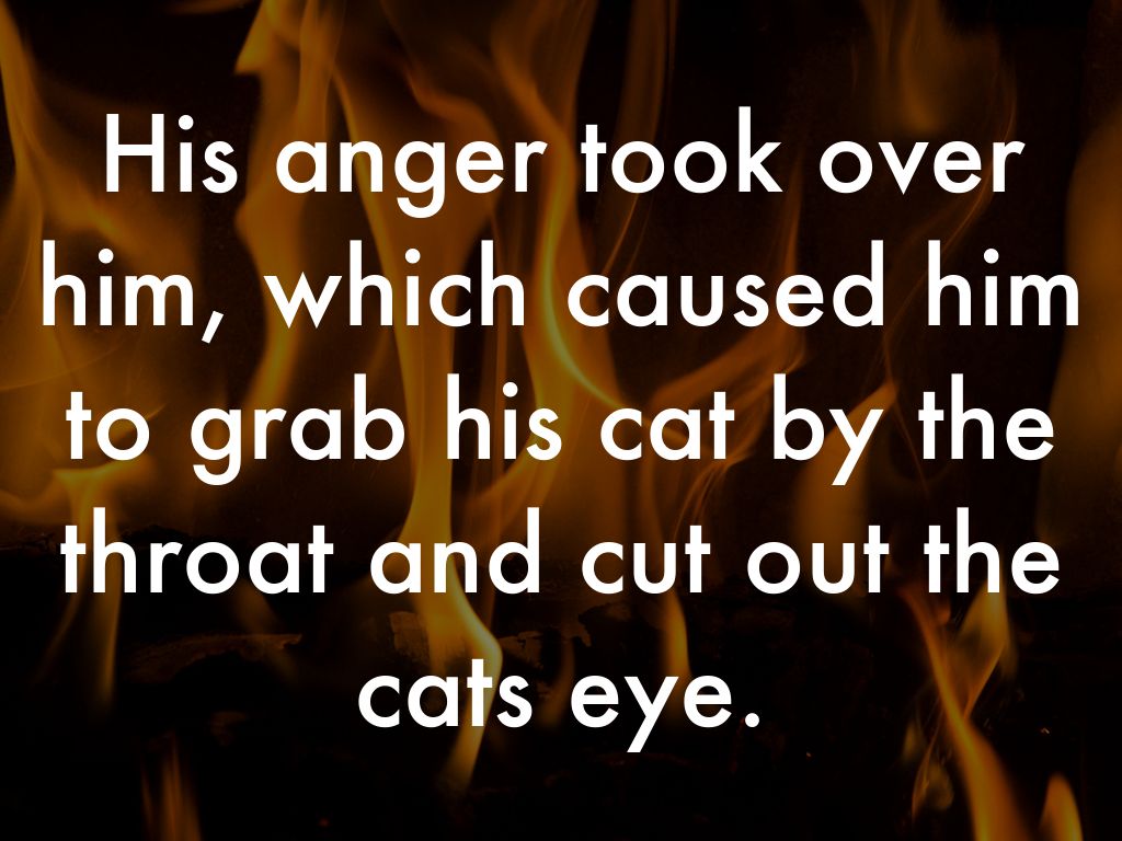 His anger took over him, which caused him to grab his cat by the throat and cut out the cats eye.