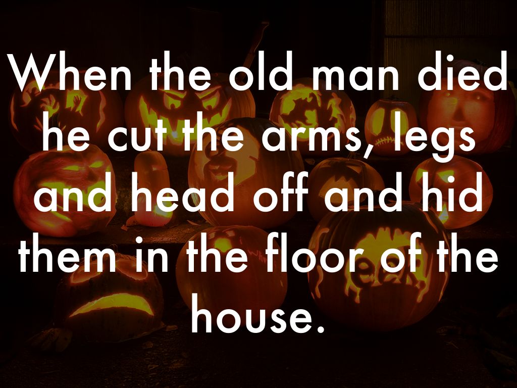 When the old man died he cut the arms, legs and head off and hid them in the floor of the house.