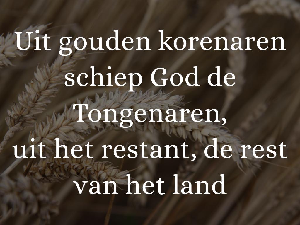 Uit gouden korenaren schiep God de Tongenaren,