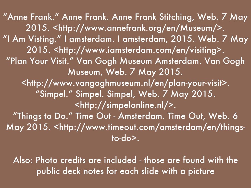 “Things to Do.” Time Out - Amsterdam. Time Out, Web. 6 May 2015. .