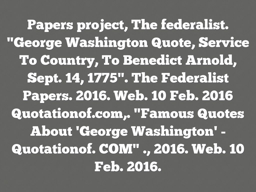 Papers project, The federalist. "George Washington Quote, Service To Country, To Benedict Arnold, Sept. 14, 1775". The Federalist Papers. 2016. Web. 10 Feb. 2016