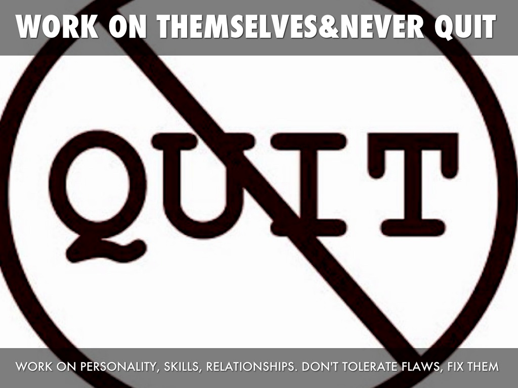 WORK ON PERSONALITY, SKILLS, RELATIONSHIPS. DON'T TOLERATE FLAWS, FIX THEM