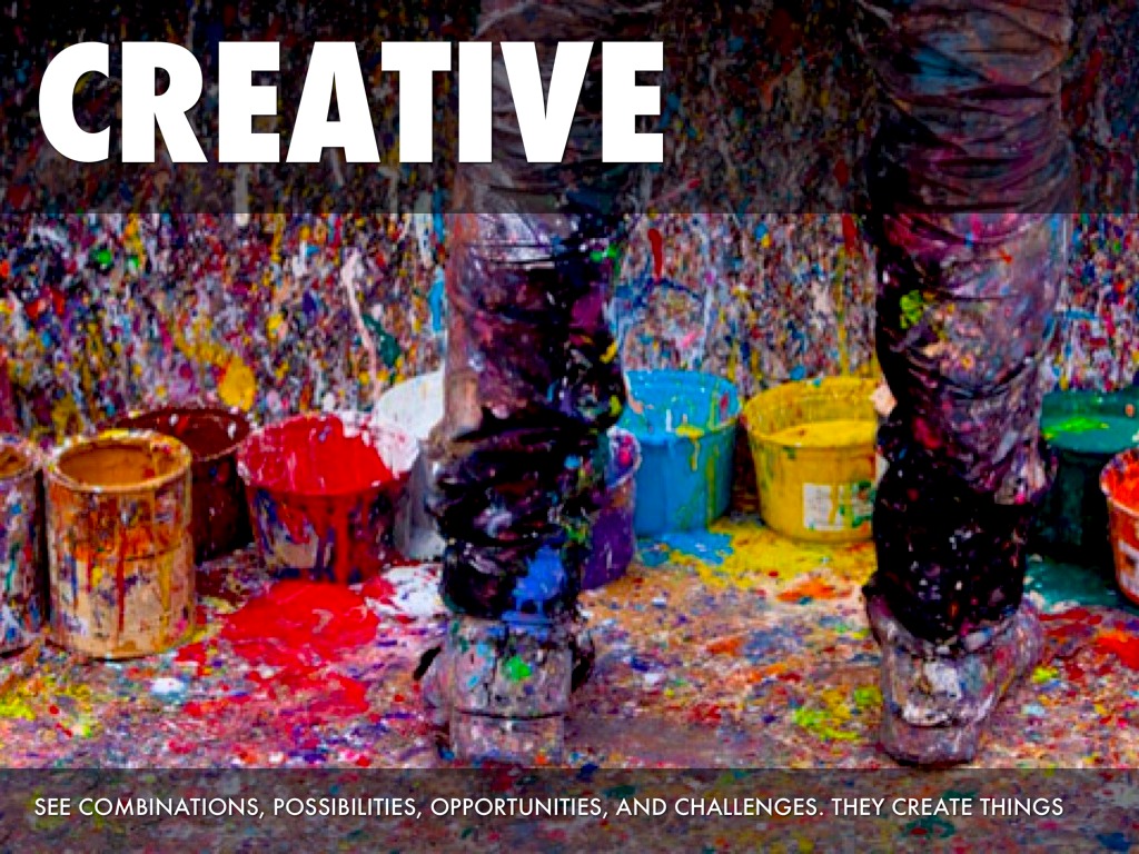 SEE COMBINATIONS, POSSIBILITIES, OPPORTUNITIES, AND CHALLENGES. THEY CREATE THINGS
