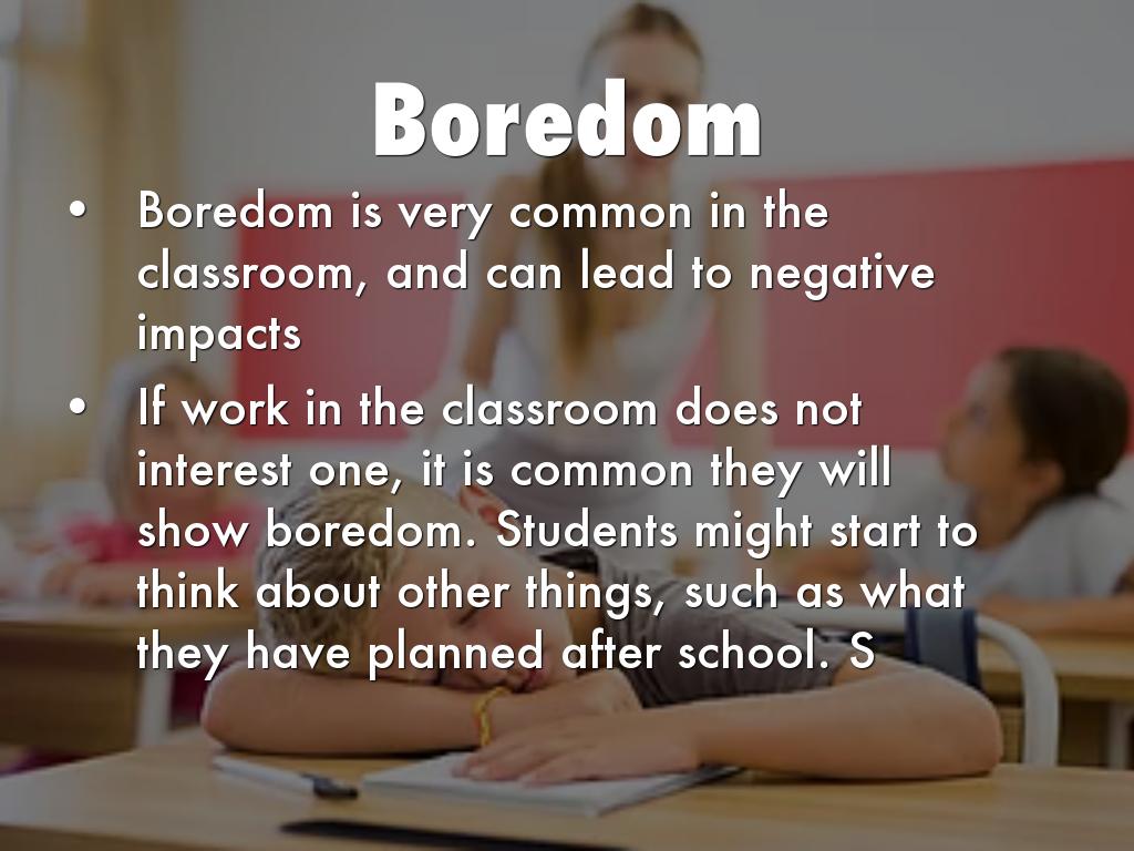 If work in the classroom does not interest one, it is common they will show boredom. Students might start to think about other things, such as what they have planned after school. S