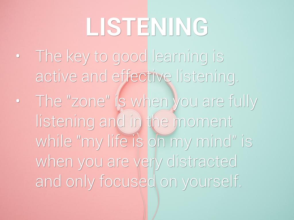 The "zone" is when you are fully listening and in the moment while "my life is on my mind" is when you are very distracted and only focused on yourself.