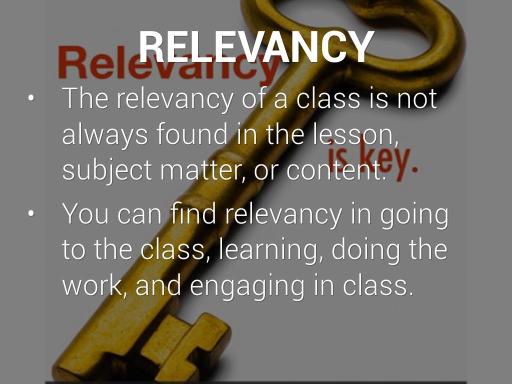 You can find relevancy in going to the class, learning, doing the work, and engaging in class.