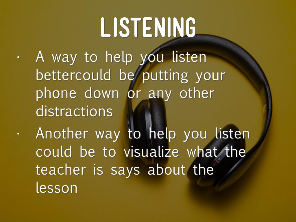 Another way to help you listen could be to visualize what the teacher is says about the lesson