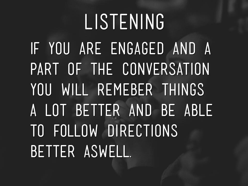 If you are engaged and a part of the conversation you will remeber things a lot better and be able to follow directions better aswell.