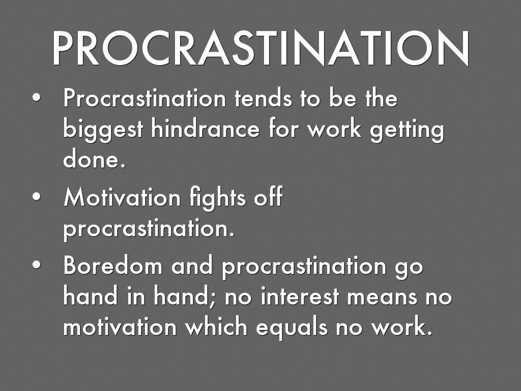 Boredom and procrastination go hand in hand; no interest means no motivation which equals no work.