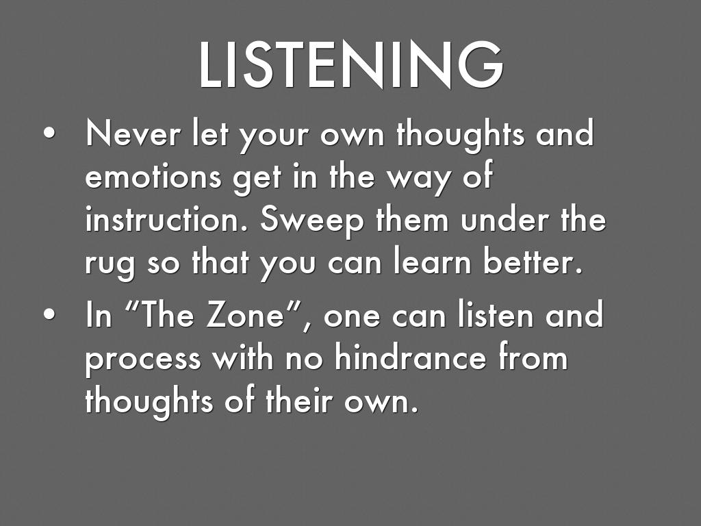 Never let your own thoughts and emotions get in the way of instruction. Sweep them under the rug so that you can learn better.