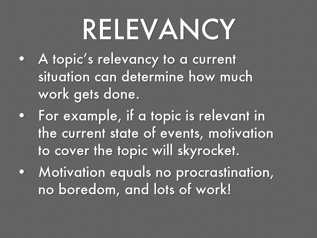 A topic’s relevancy to a current situation can determine how much work gets done.