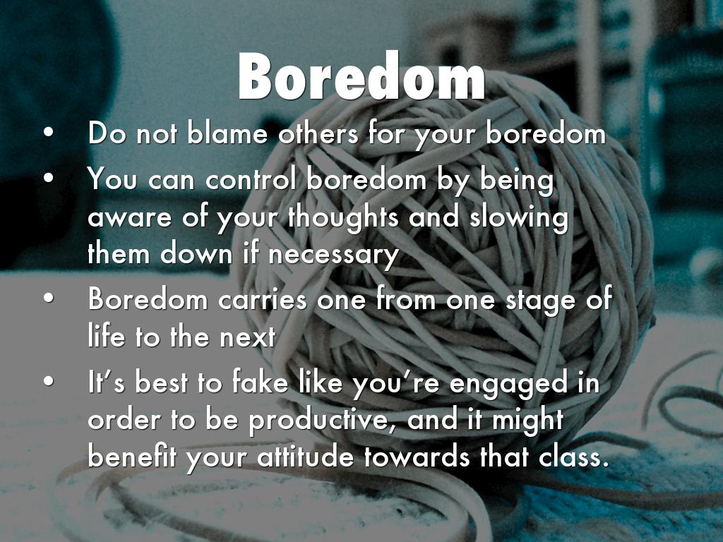 You can control boredom by being aware of your thoughts and slowing them down if necessary