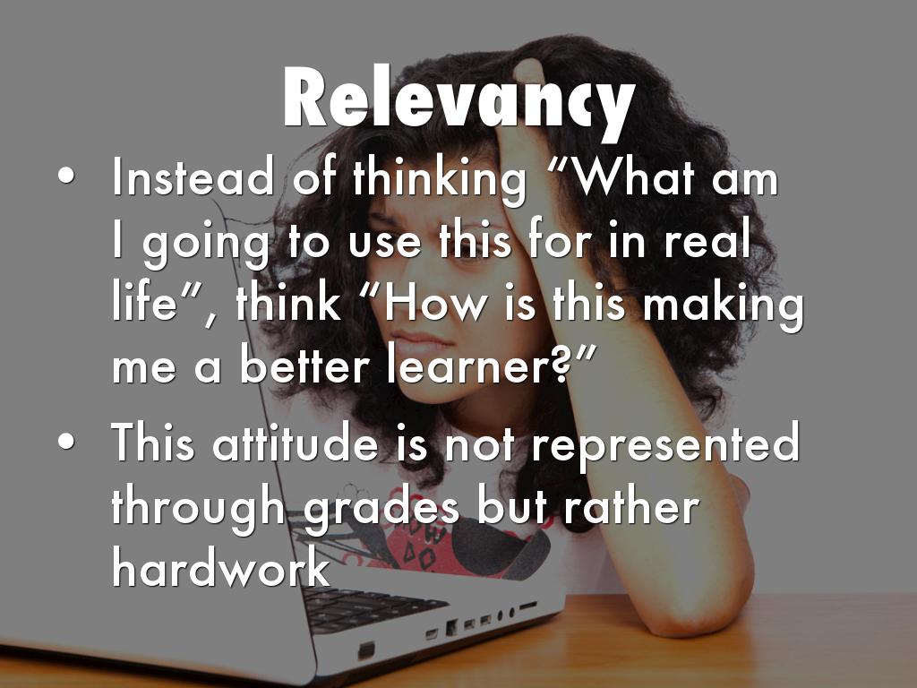 Instead of thinking “What am I going to use this for in real life”, think “How is this making me a better learner?”