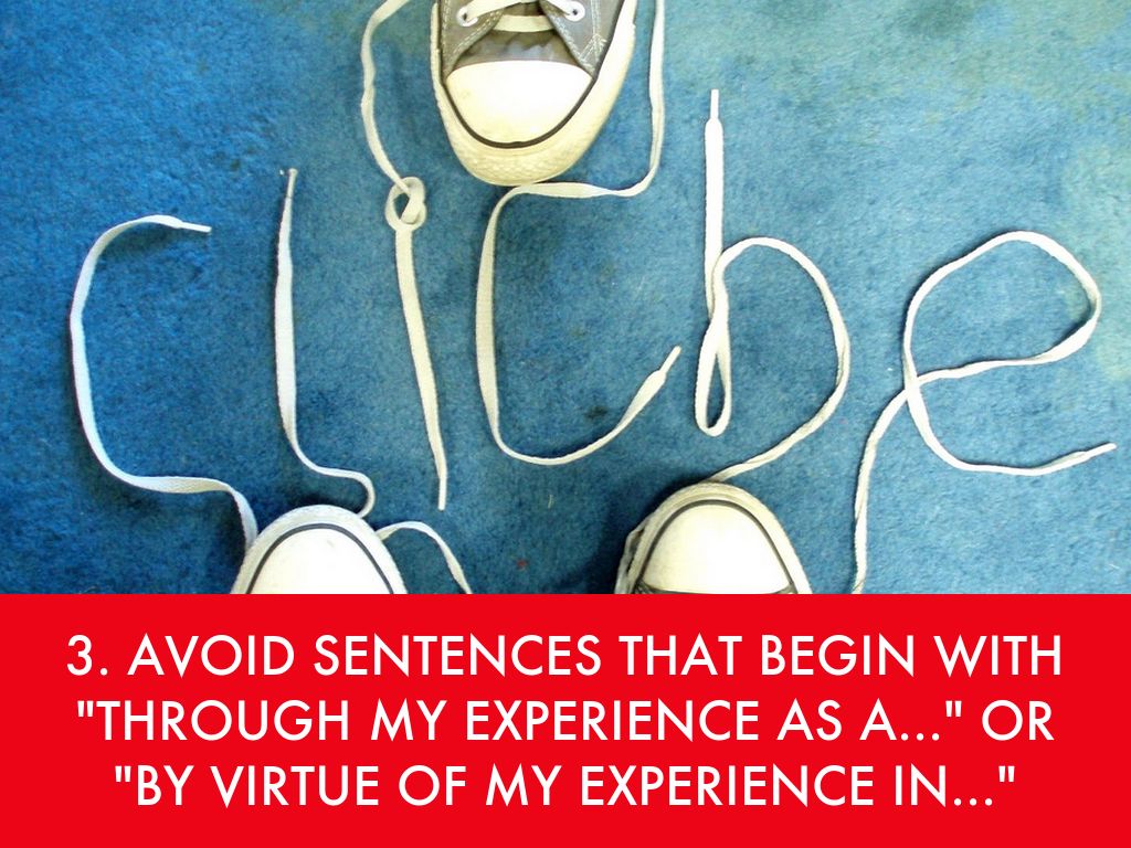 3. AVOID SENTENCES THAT BEGIN WITH "THROUGH MY EXPERIENCE AS A..." OR "BY VIRTUE OF MY EXPERIENCE IN..."