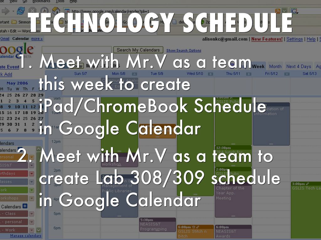 Meet with Mr.V as a team this week to create iPad/ChromeBook Schedule in Google Calendar