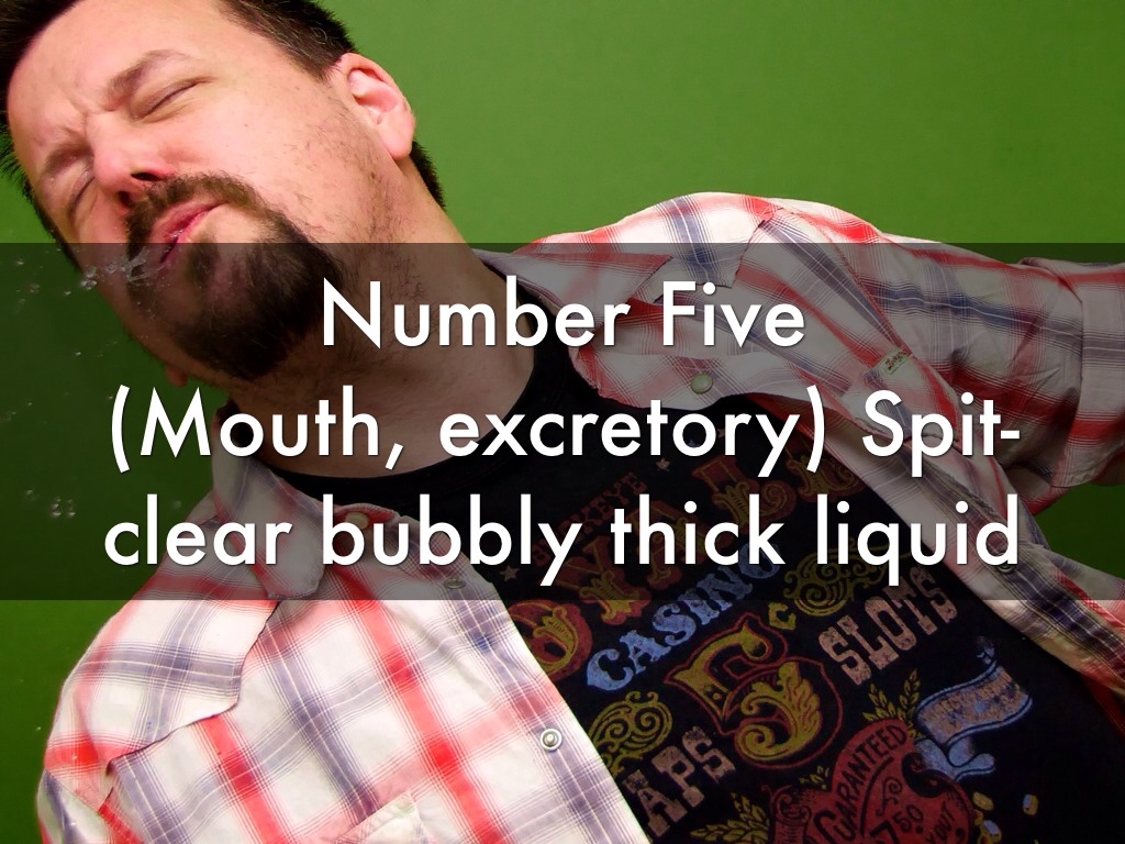 (Mouth, excretory) Spit- clear bubbly thick liquid