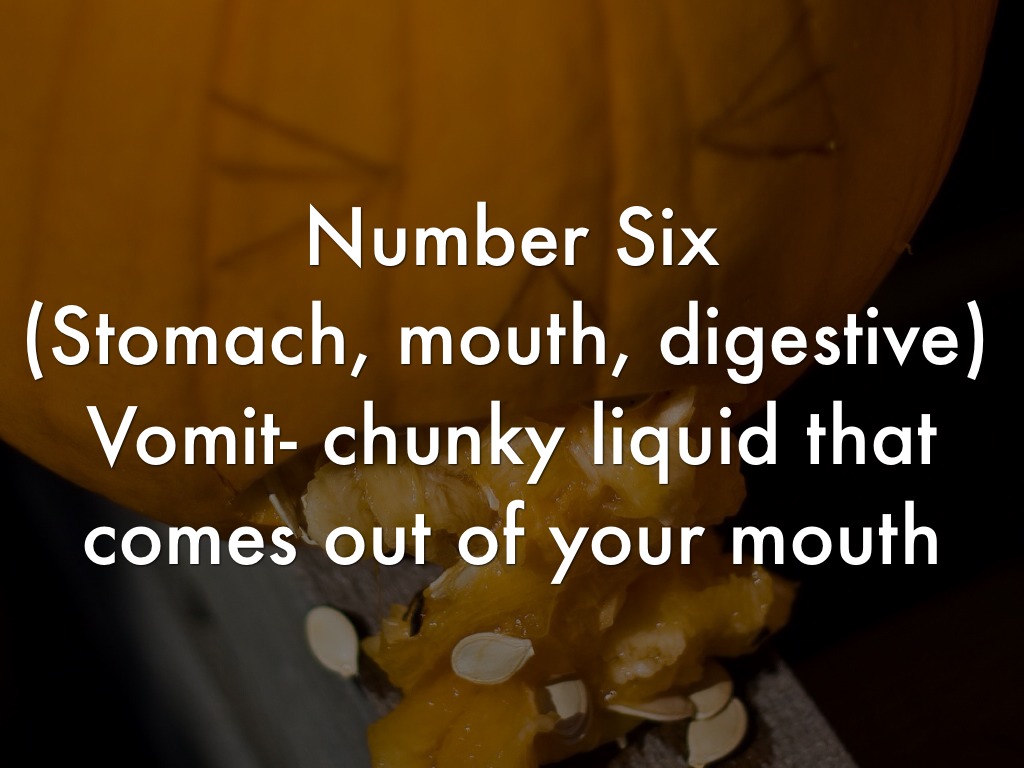 (Stomach, mouth, digestive) Vomit- chunky liquid that comes out of your mouth