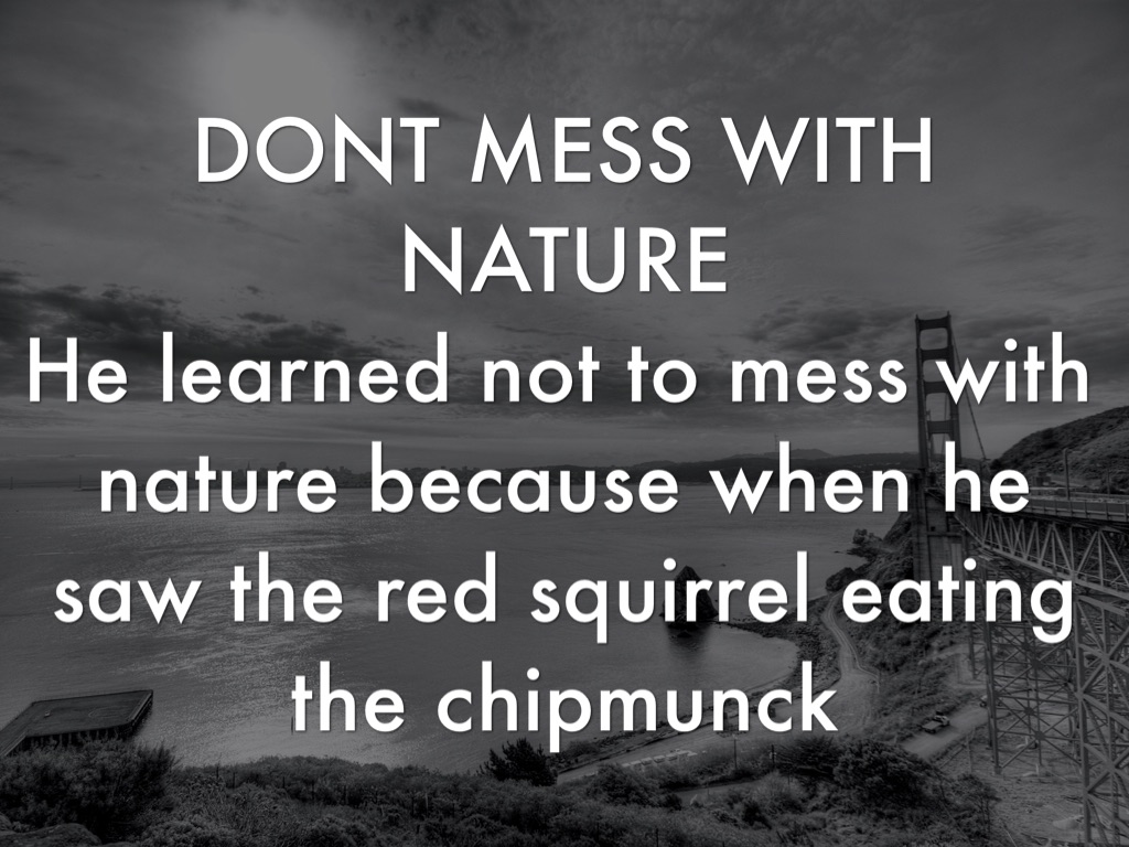 He learned not to mess with nature because when he saw the red squirrel eating the chipmunck