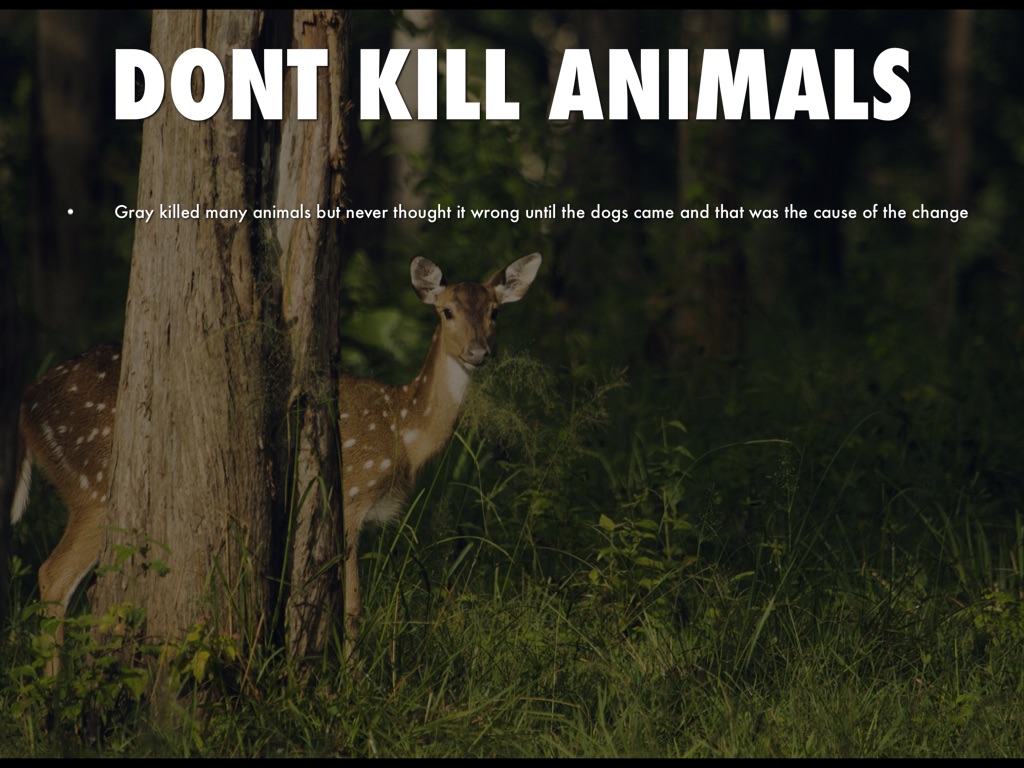 Gray killed many animals but never thought it wrong until the dogs came and that was the cause of the change