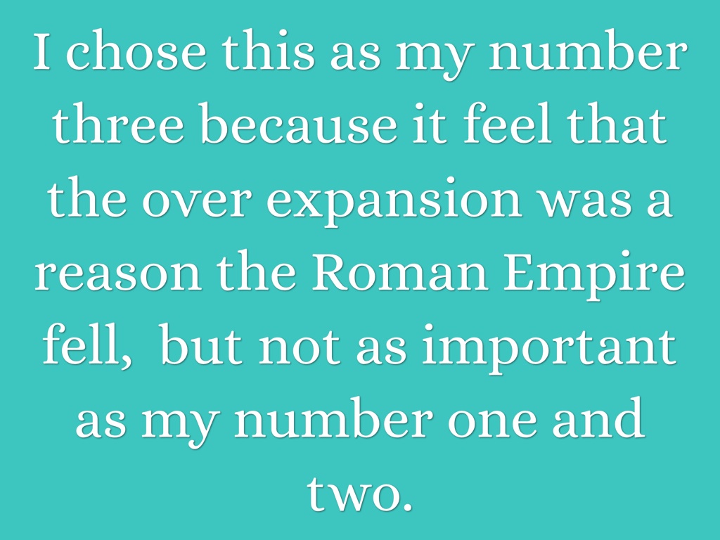 I chose this as my number three because it feel that the over expansion was a reason the Roman Empire fell, but not as important as my number one and two.