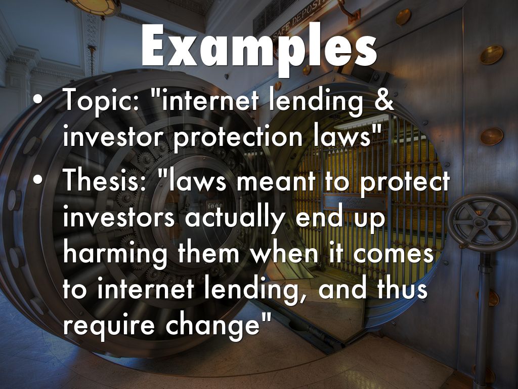 • Thesis: "laws meant to protect investors actually end up harming them when it comes to internet lending, and thus require change"