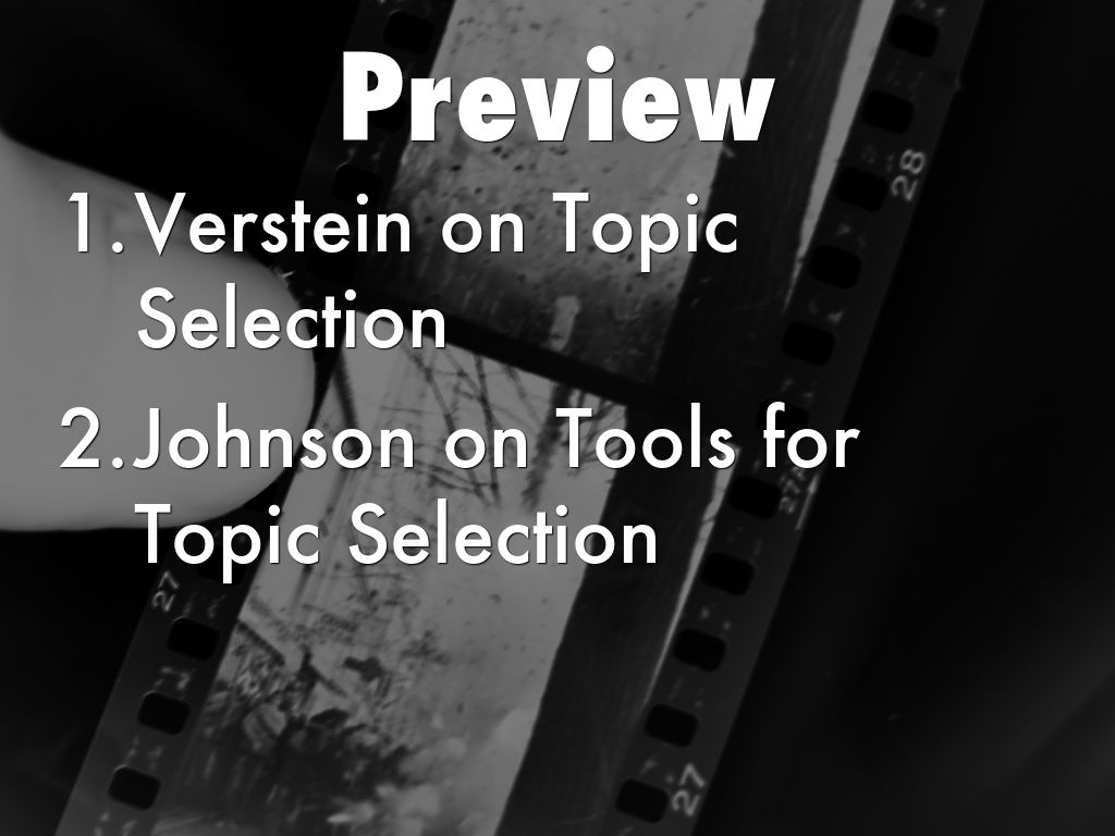 Pick a topic in order to have a starting place to build a thesis. You start general and then refine it into a point of view.