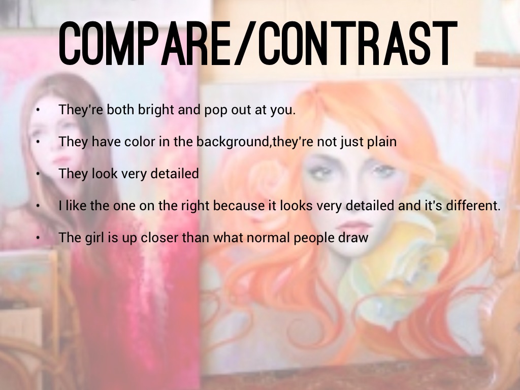 Her artwork is unique.What makes it unique is the different people she uses for each artwork and it is very realistic looking